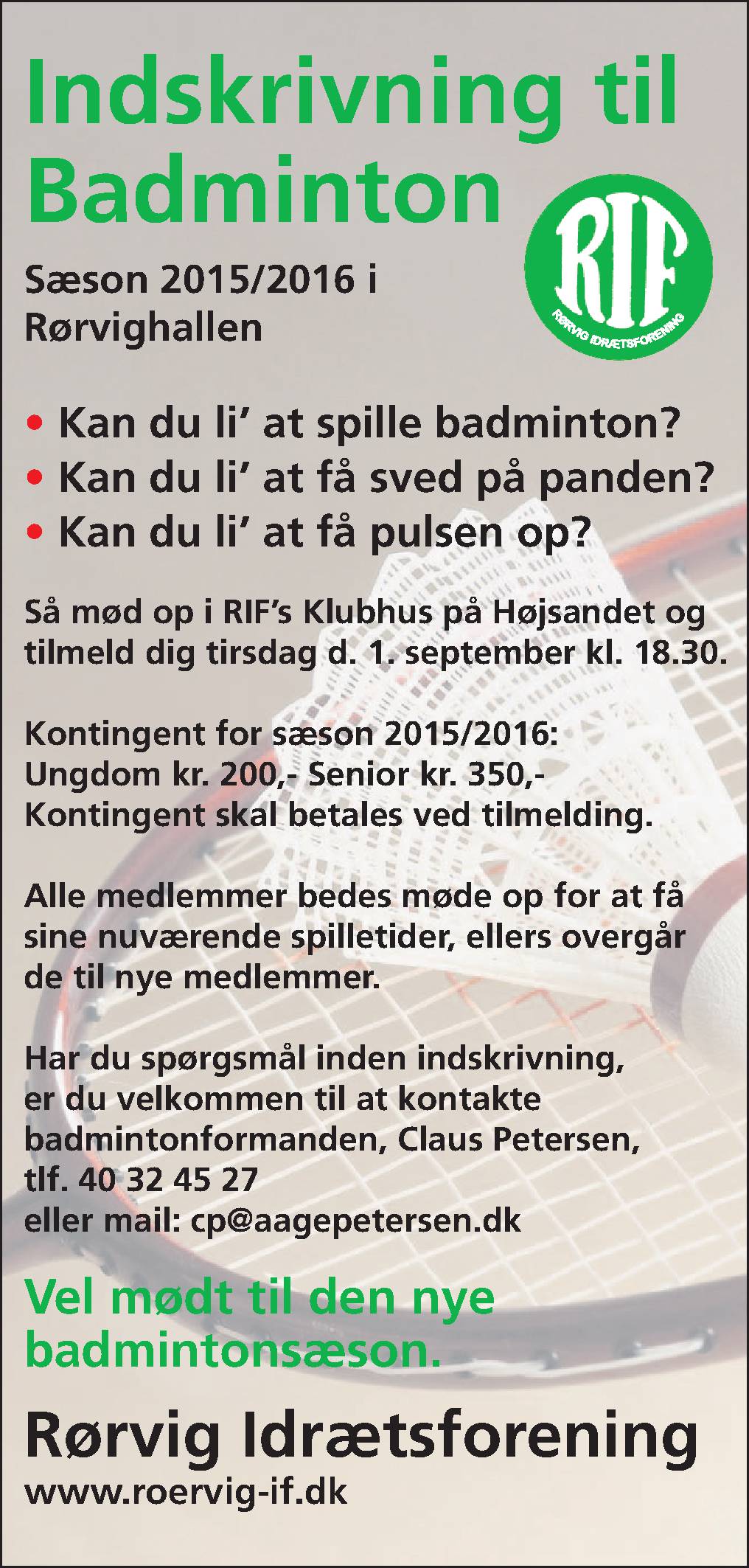 Tirsdag den 1. september 2015, kl. 18:30 I Klubhuset på Højsandet.